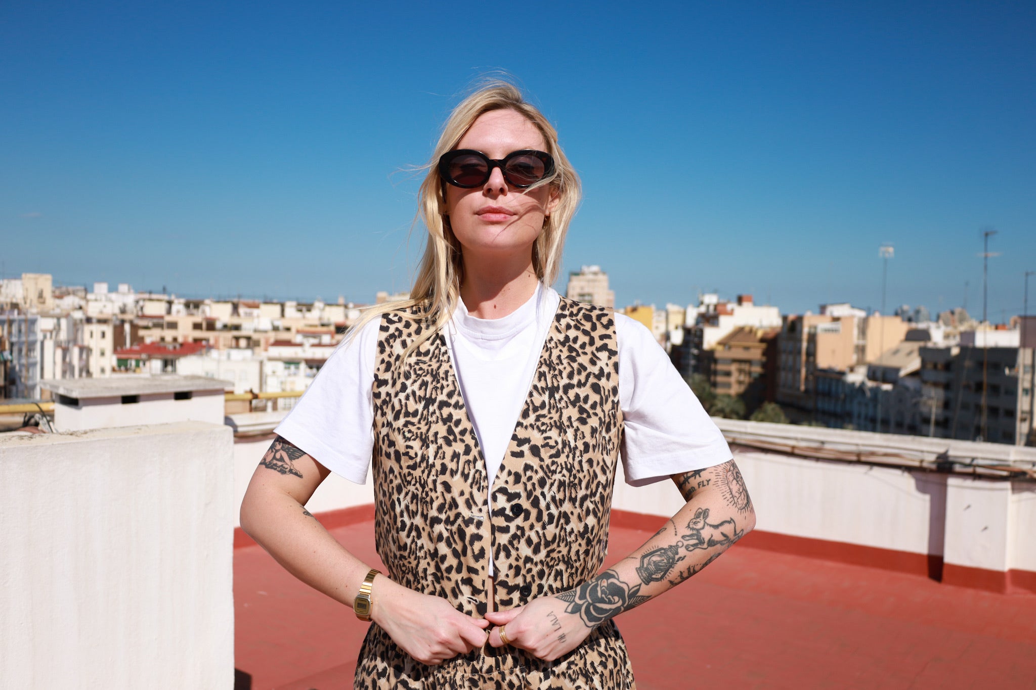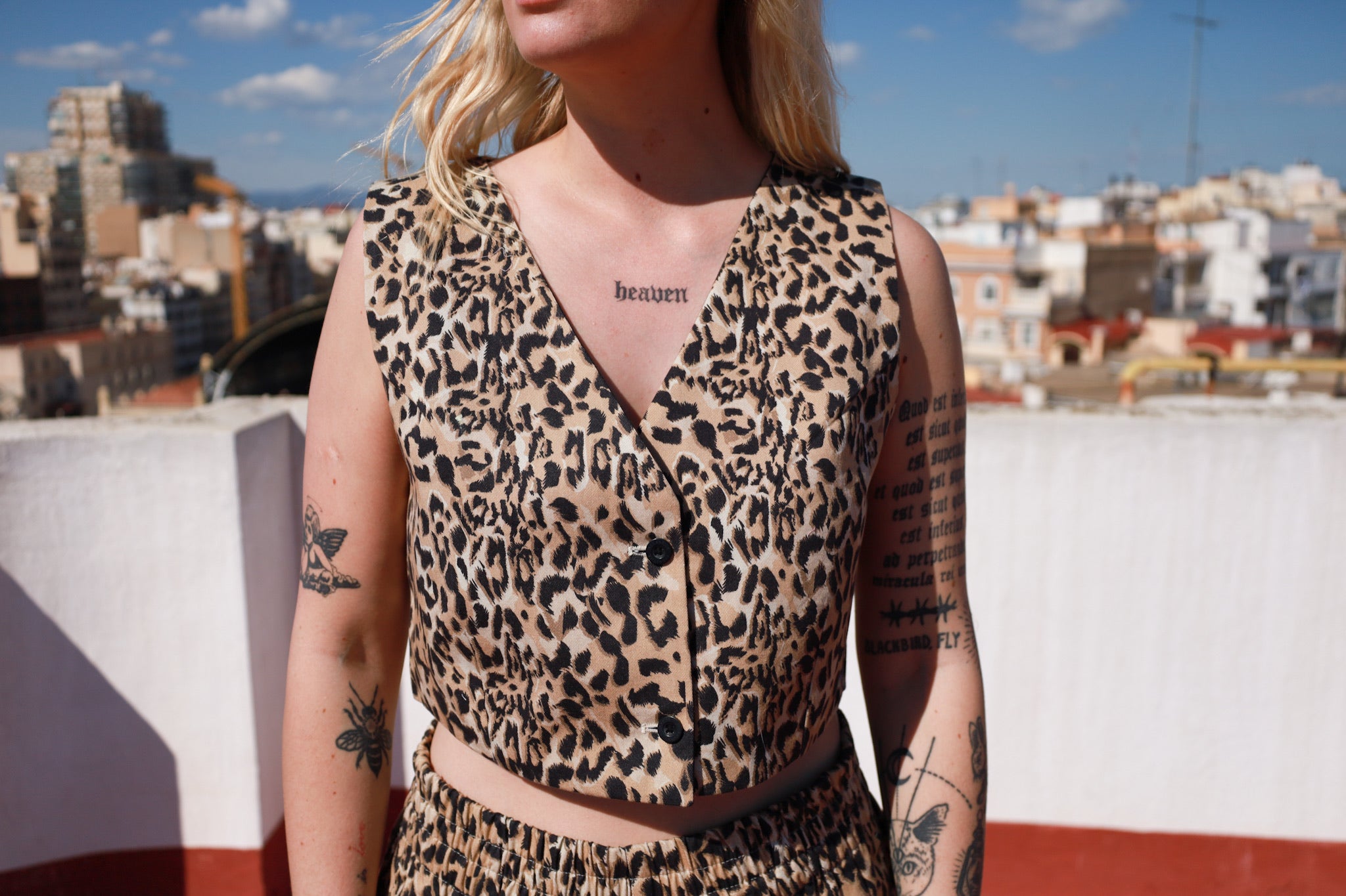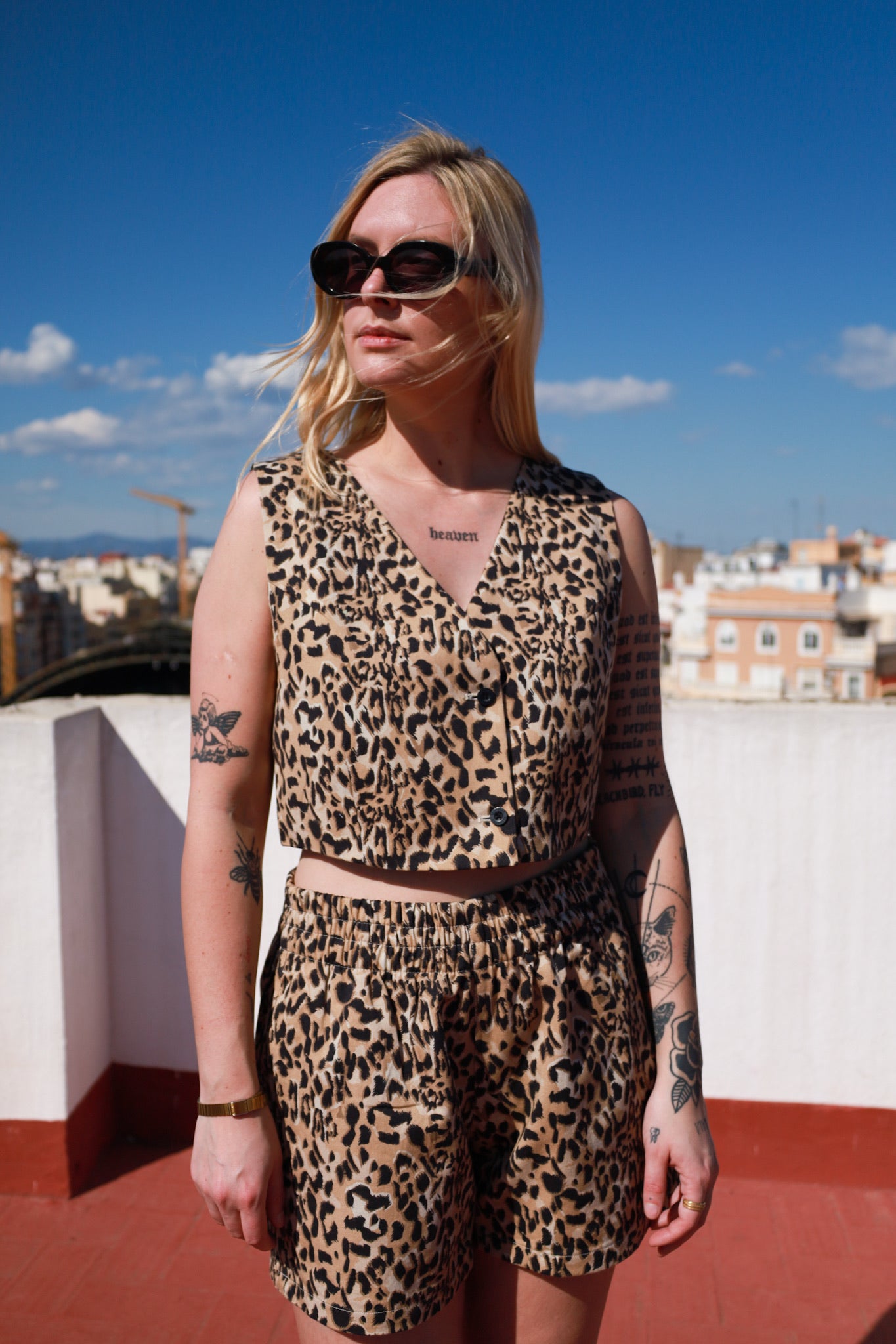 This gilet is made from 100% organic cotton in a high-quality gabardine weave and named after a friend Kim. You can wear this item both sides! You only need to cut out the labels. The strong, organic fabric ensures durability, making this gilet perfect for wearing season after season. It’s a stylish and responsible choice for your festival wardrobe.