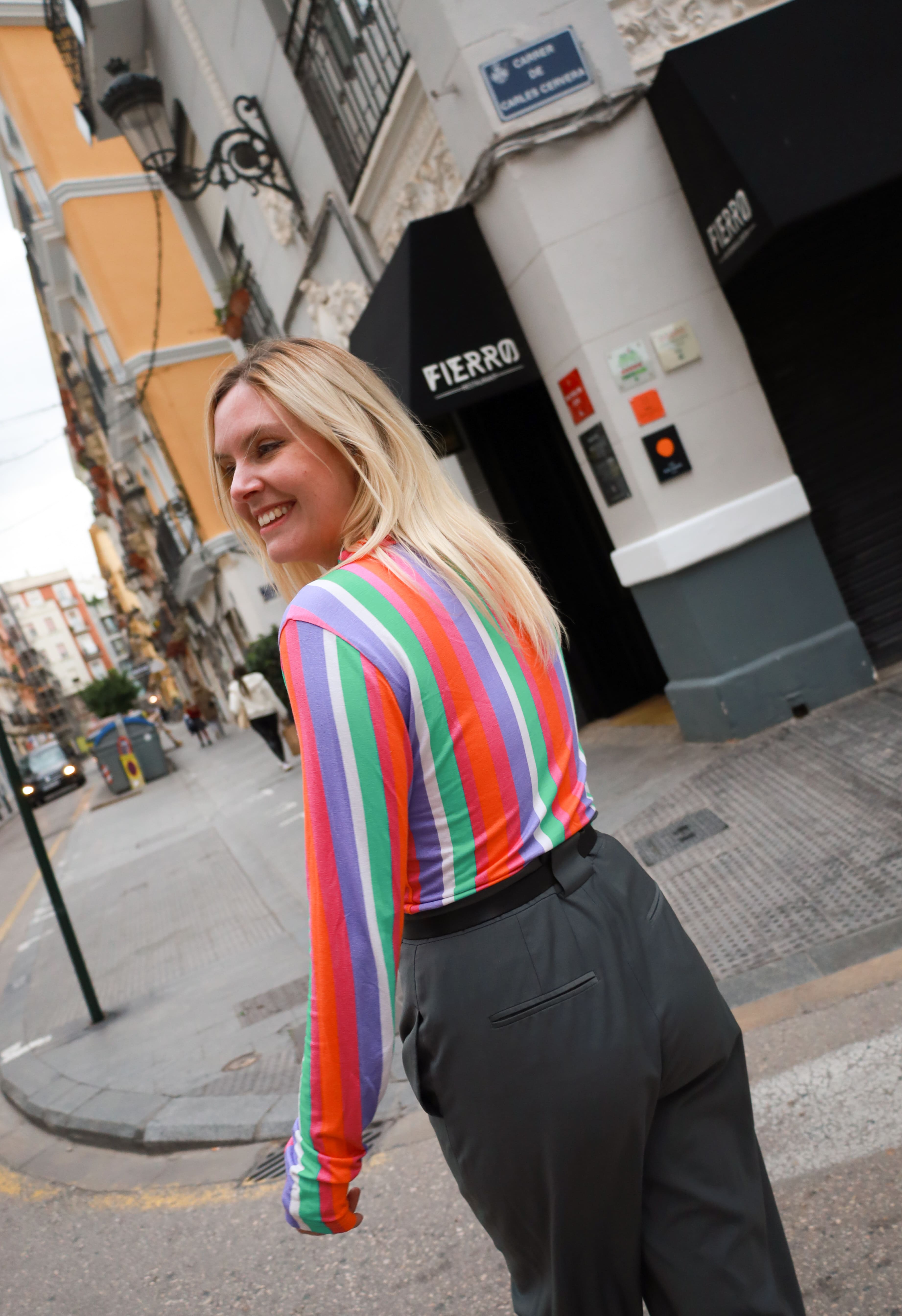 The Turtleneck is made from 93% EcoViscose and 7% elastane. This top is super stretchy and it’s colourful print will bring happiness to you and those around you!